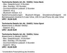Der Hama Voice Neck wird durch einen Nackenbügel gesichert. Bei Hamas Voice Sport sorgen ergonomisch geformte Ohrbügel auch beim Joggen für sicheren Halt. Mit der integrierten Fernbedienung wird die Sprachwahl aktiviert, alternativ können darüber auch Telefonate angenommen, oder die Musik über Play/Pause/Titel vor- und zurückgespult werden (vom Handymodell abhängig).