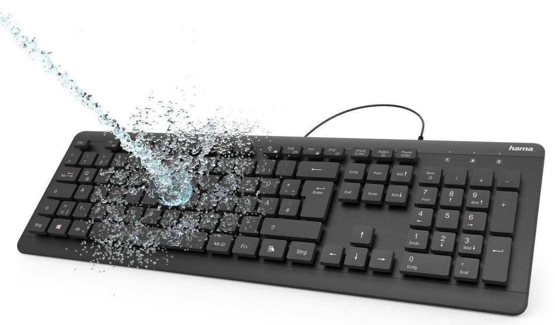 Die wasserfeste Tastatur KC-600 von Hama ist gemäß IPX7-Standard gegen zeitweiliges Untertauchen in Wasser geschützt und lässt sich daher problemlos unter laufendem Wasser reinigen. Das Hama-Keyboard ist laut Herstellerangaben bis zu einer Eintauchtiefe von max. 1 Meter und einer Dauer von 1 Stunde wasserfest und kann daher wie Haushaltgeschirr gereinigt werden.