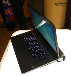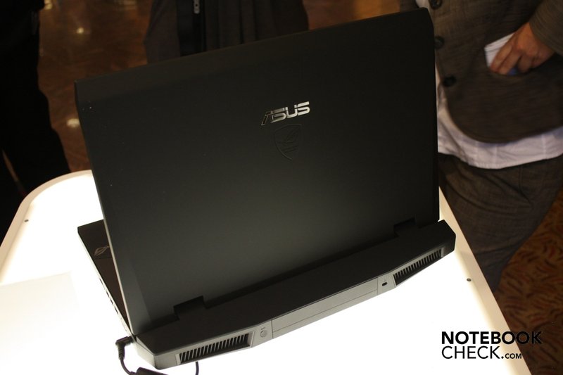 Das Konzept scheint gut aufzugehen: Einerseits konnten wir während unseres eineinhalbstündigen Tests keine spürbare Erwärmung der Handballenauflage feststellen, andererseits blieb das Gerät durch die zwei großen Lüfter und das nach hinten abgeleitete Kühlgeräusch stets sehr leise. Zumindest am Messestand mit Gesprächen und anderen Hintergrundgeräuschen konnte man das Säuseln der Lüfter nur sehr schwach wahrnehmen und auch nur, wenn man an die Rückseite des Notebooks ging.