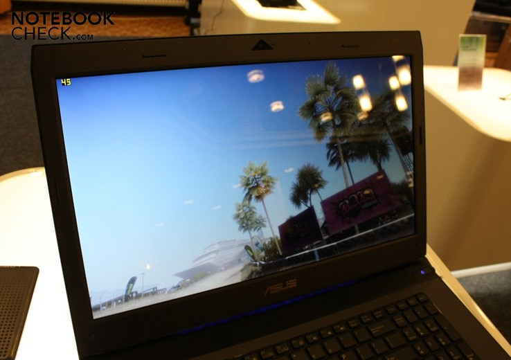 Da der Bildschirm mit einer hochglänzenden Beschichtung ausgeführt ist, muss man beim, ohnehin allerdings wohl eher selten praktizierten Außeneinsatz des G73Jh oder bei sehr hellen Innenräumen mit störenden Spiegelungen rechnen.