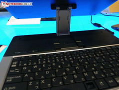 Der Kippmechanismus ist gewöhnungsbedürftig und ein wenig widerspenstig. Ein ähnliches Konzept bietet Asus mit dem Eee Pad Slider bereits an. Allerdings arbeitet dieses Gerät nicht mit Windows 7, sondern mit Google Android Betriebssystem. Preislich ist das Angebot von Asus mit 499 Euro (32 GByte) aber auch deutlich günstiger. Die Tastatur des Fujitsu TH40/D ist angenehm. Als Mausersatz dient ein optischer Trackpoint im unteren Bereich, der durch den Touchscreen des Gerätes ergänzt wird.