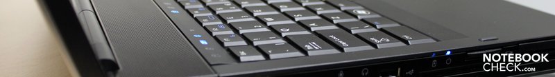 Bei der Tastatur hat ein bei vielen Multimedia-Notebooks aufkommendes Feature Einzug gehalten, nämlich eine hinterleuchtete Tastatureinheit. Dass dies nicht nur schick aussieht, sondern auch einen praktischen Nutzen hat, haben wohl bereits alle glücklichen Besitzer derartiger Technik feststellen dürfen. Speziell bei ungünstigen dunklen Lichtverhältnissen sorgt die Beleuchtung der aufgedruckten Lettern für einen guten Kontrast und eine problemlose Erkennbarkeit, selbst bei völliger Dunkelheit. Lenovos Think-Light in der Oberkante des Displays bringt einen deutlich geringeren Mehrwert, blockiert man die Beleuchtung der Tastatur doch stets mit seinen Händen.