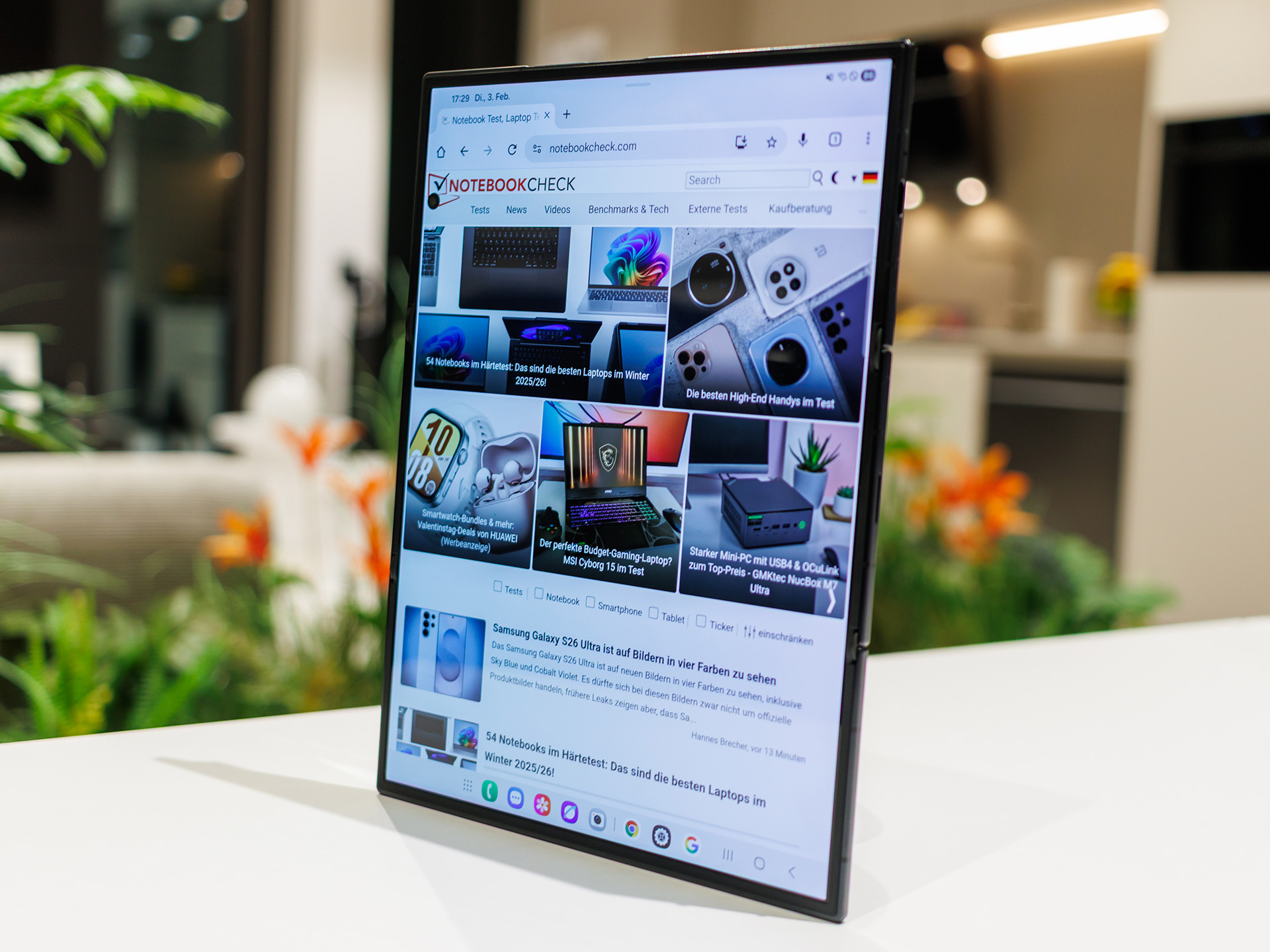 Auf der Rückseite verbaut Samsung ein Triple-Kamerasystem mit hochauflösender Hauptkamera, Ultraweitwinkel und Teleobjektiv, das auf dem Papier in der Premiumklasse mitspielen kann und vom Flex-Form-Faktor profitiert, etwa für freihändige Aufnahmen oder kreative Perspektiven, wenn das Gerät halb aufgeklappt als Stativ dient. Hinzu kommen mehrere Frontkameras für Videochats und Selfies, die im Zusammenspiel mit dem großen Innendisplay besonders für produktive Meetings oder Content-Creation spannend sein können. Die Konstruktion mit zwei Scharnieren, Titan-Elementen und verstärktem Glas soll trotz der komplexen Mechanik eine verbesserte Robustheit liefern, bleibt aber naturgemäß empfindlicher als ein klassischer Monoblock.