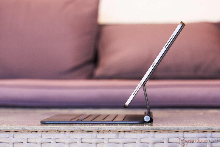 Apple verspricht, dass der Winkel des iPad stufenlos eingestellt werden kann. Das stimmt so auch – bis zu einem gewissen Grad. denn der maximale Öffnungswinkel ist deutlich kleiner als etwa bei einem MacBook Air (ab 1.137 Euro auf Amazon), was gerade bei der Nutzung am Schoß stört.