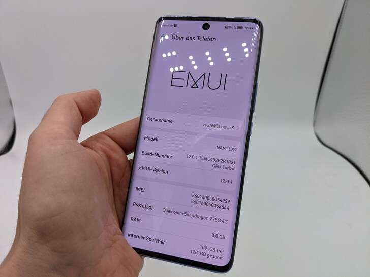 Wenn wir schon beim Thema Sanktionen sind: Auch die Google Services und Apps findet man auf Nova 8i und Nova 9 natürlich nicht, als Alternative stehen die Huawei Mobile Services und die App Gallery zur Verfügung, wo man vieles aber eben nicht alles findet. Auf dem Nova 8i läuft Android 10 mit EMUI 11 als Oberfläche, auf dem Nova 9 ist es HarmonyOS, Huaweis Bezeichnung für eine modifizierte Version von Open Source Android 11, die sich in den Phone-Einstellungen aber als EMUI 12.0.1 identifiziert, wie man in den Hands-On-Bildern unten sehen kann.