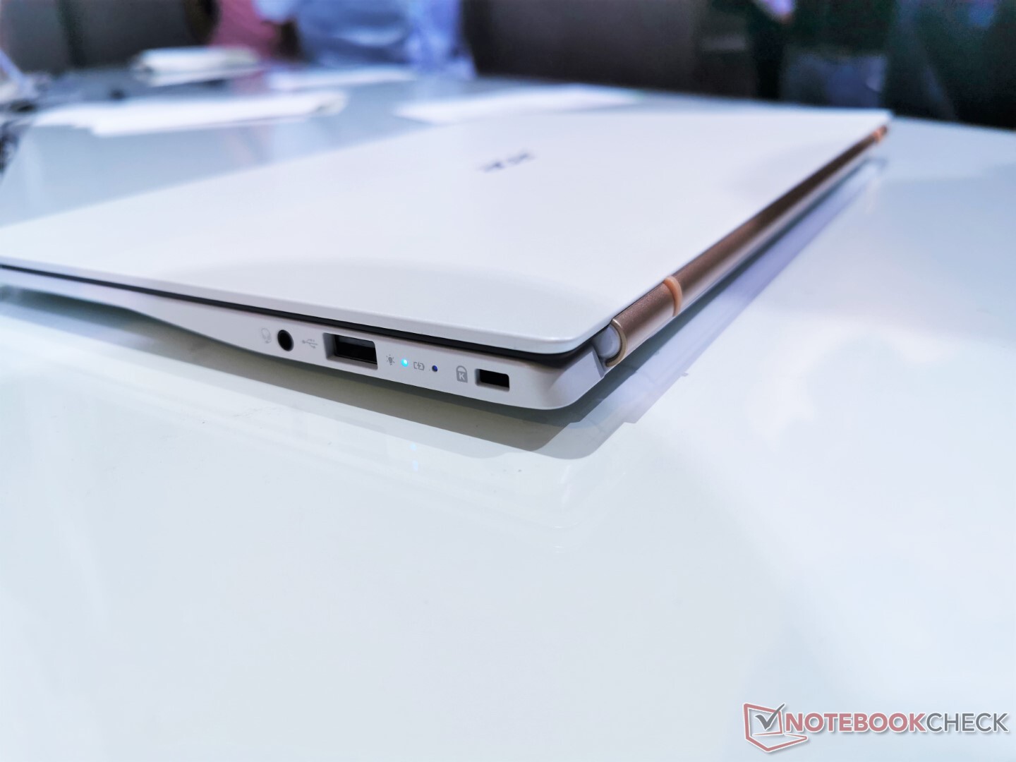 Auf der deutschen Acer-Seite kündigt sich die neue 2019-Generation des Swift 5 bereits an, während die Modellvarianten noch die alten sind, wurde die Produktseite bereits entsprechend angepasst, ohne allerdings konkrete Modellvarianten mit Intels Ice Lake-CPUs zu verraten oder alle Spezifikationen aufzulisten. Wir hatten auf der IFA die leider nur sehr kurze Gelegenheit, eines der neuen Swift 5-Exemplare näher anzusehen, es fühlt sich ähnlich der LG Gram-Familie tatsächlich sehr leicht an und basiert wieder auf einem Magnesium-Lithium beziehungsweise Magnesium-Aluminium-Chassis, welches das niedrige Gewicht von nur 990 Gramm für den 14 Zöller erlaubt.