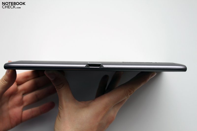 Die gezeigten Pre-Samples weisen ein attraktives Design auf, wirkten mit dem Aluminium-Gehäuse bereits sehr hochwertig und bewegen sich hinsichtlich Gewichts in etwa auf einer Ebene wie Apples iPad. Eine Unibody-Chassis wird man allerdings nicht vorfinden. Maximal misst das Device 13 Millimeter Dicke, ähnlich dem iPad wird durch ein Abflachen zu den Seiten hin allerdings ein wesentlich schlankerer Eindruck vermittelt.