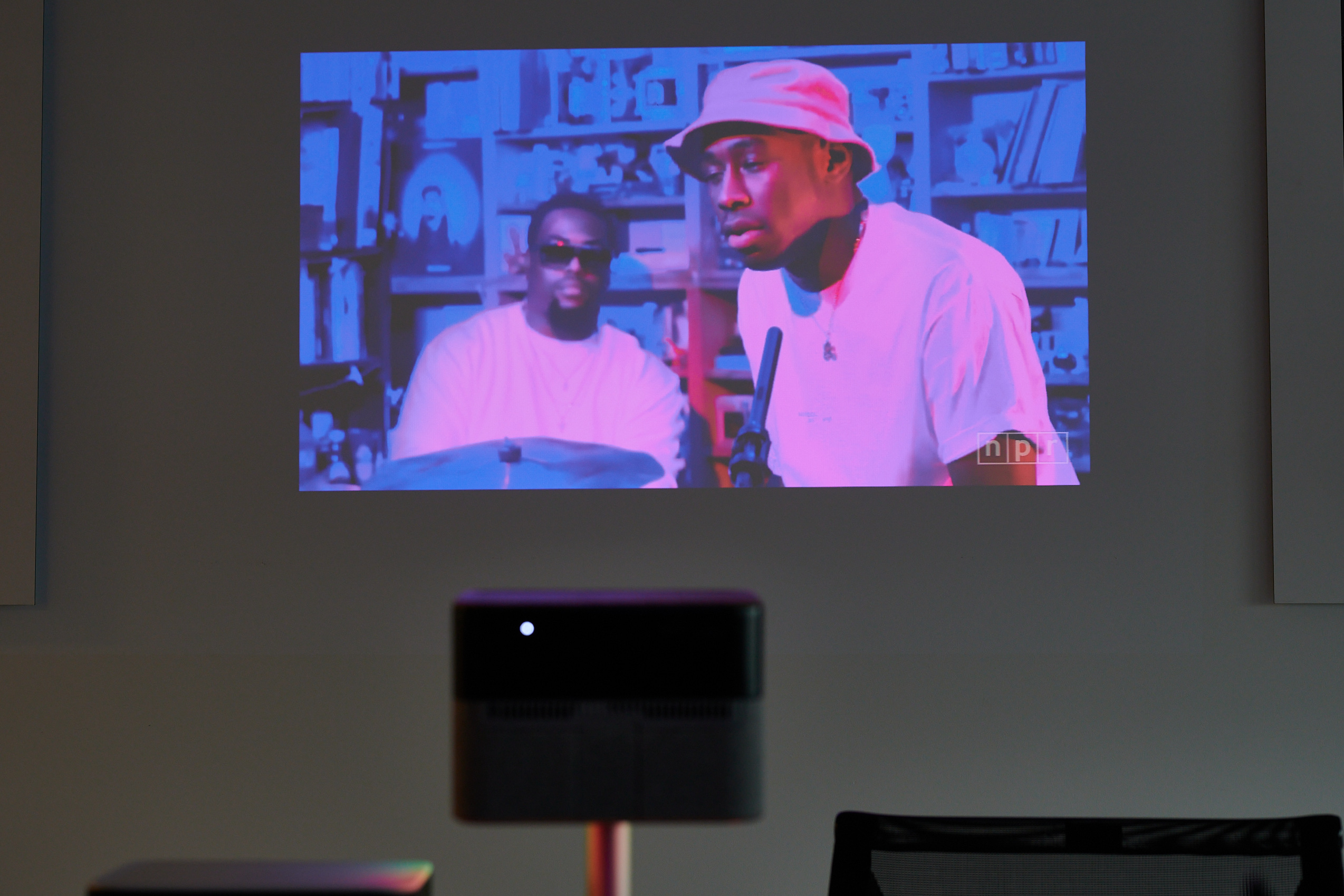 Im regulären Einsatz war also nichts zu bemerken. Wir haben diesbezüglich deswegen auch einen Worst-Case-Test ausprobiert. Das NPR Tiny-Desk-Konzert von Tyler the Creator benutzt eine sehr spezielle, unnatürliche Magenta-Beleuchtung während des Konzerts. Für Projektoren ist das mitunter eine extreme Herausforderung. Anfangs hatten wir das auch beim EF-72 gedacht. In der Standardeinstellung sah das Bild nicht gut aus. Die Farbnuancen des Magenta-Tons verschwammen und das Bild wurde platt.