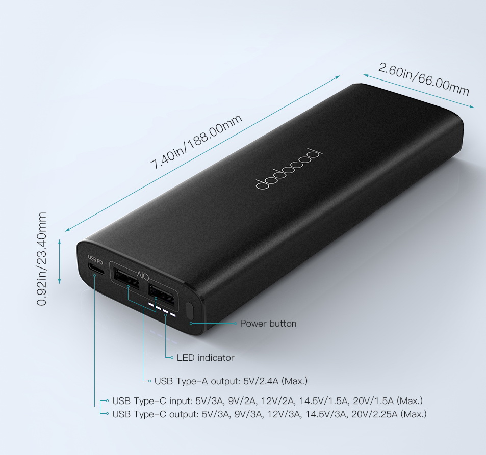 dodocool hat mit dem Modell dodocool DP13 20100 mAh eine Powerbank im Angebot, die mit 45 Watt USB-C Power Delivery (PD) auch das Aufladen von Notebooks wie dem Apple MacBook und MacBook Pro erlaubt. Von der Optik her orientiert sich die dodocool DP13 mit Metallchassis an anderen Power-Banks aus China wie der Anker PowerCore+ oder Anker PowerCore Speed 20000 PD. Der Akkupack DP13 von dodocool bringt in der 20.000er Powerbank-Klasse fast ein halbes Kilo (486 Gramm) auf die Waage. Die grundsätzlichen technischen Daten und Spezifikationen der dodocool DP13 Powerbank sind schnell aufgezählt: