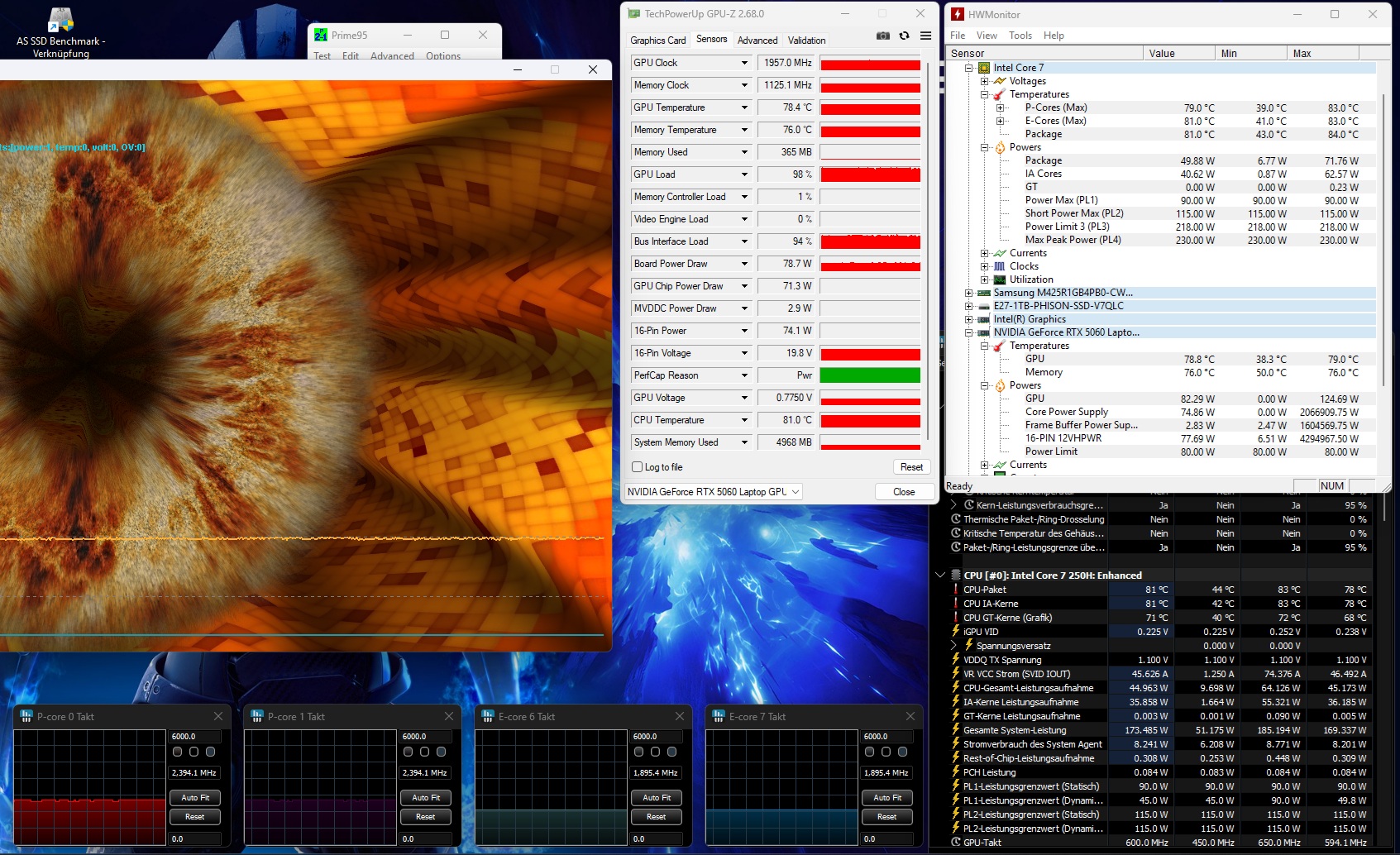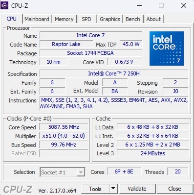 Intels Core 7 250H feiert im Deputy 15 P1 Premiere. Das 10-nm-Modell aus der Raptor Lake-Generation ist nicht mehr ganz up-to-date, erreicht dank 6 Performance-Kernen und 8 Effizienzkernen jedoch trotzdem ein ziemlich gutes Level. Während sich der Core 7 250H nach einem Kaltstart an die Spitze der Konkurrenzgeräte setzt, pendelt sich die Leistung nach einer Weile auf das Niveau eines Ryzen 7 260 bzw. Ryzen AI 7 350 ein.