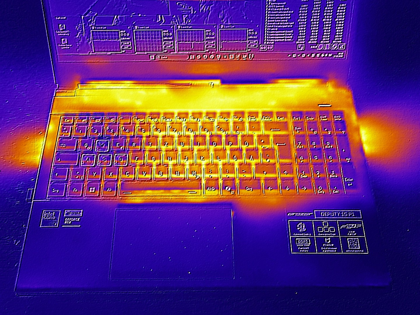 Die Temperaturen tanzen nicht aus der Reihe. Mit maximal 43 °C auf der Oberseite und maximal 52 °C auf der Unterseite erinnert das Deputy 15 P1 an das Lenovo Legion 5 15. Bei Idle-Situationen macht es sich das Chassis im Schnitt bei moderaten 28 °C bequem.