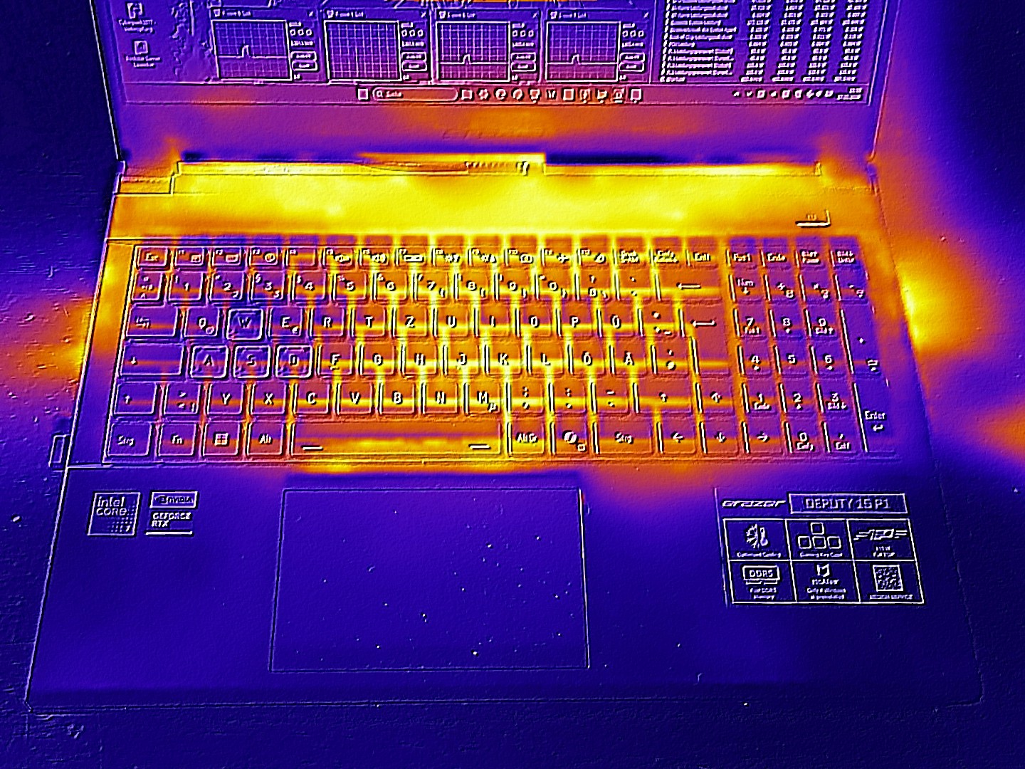 (±) 3: The average temperature for the upper side is 36.6 °C / 98 F, compared to the average of 33.9 °C / 93 F for the class Gaming.