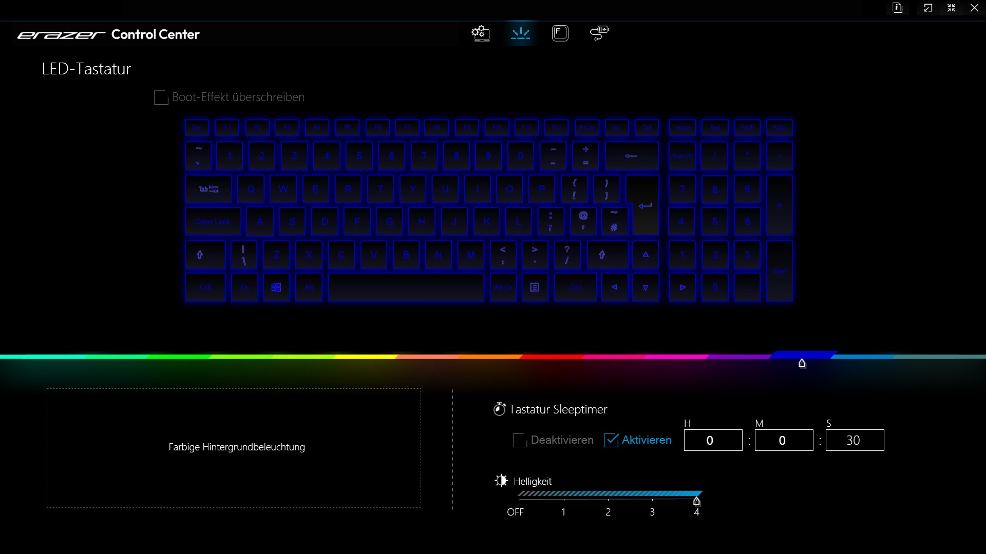Das Erazer Control Center gewährt Zugriff auf drei Betriebsmodi, von denen der Gaming-Modus für unsere Tests zum Einsatz kam. Für den Alltag würden wir jedoch eher zum Unterhaltungsmodus tendieren, da nur die CPU-Performance etwas leidet, das Gerät unter Last aber deutlich ruhiger bleibt (siehe Tabelle).