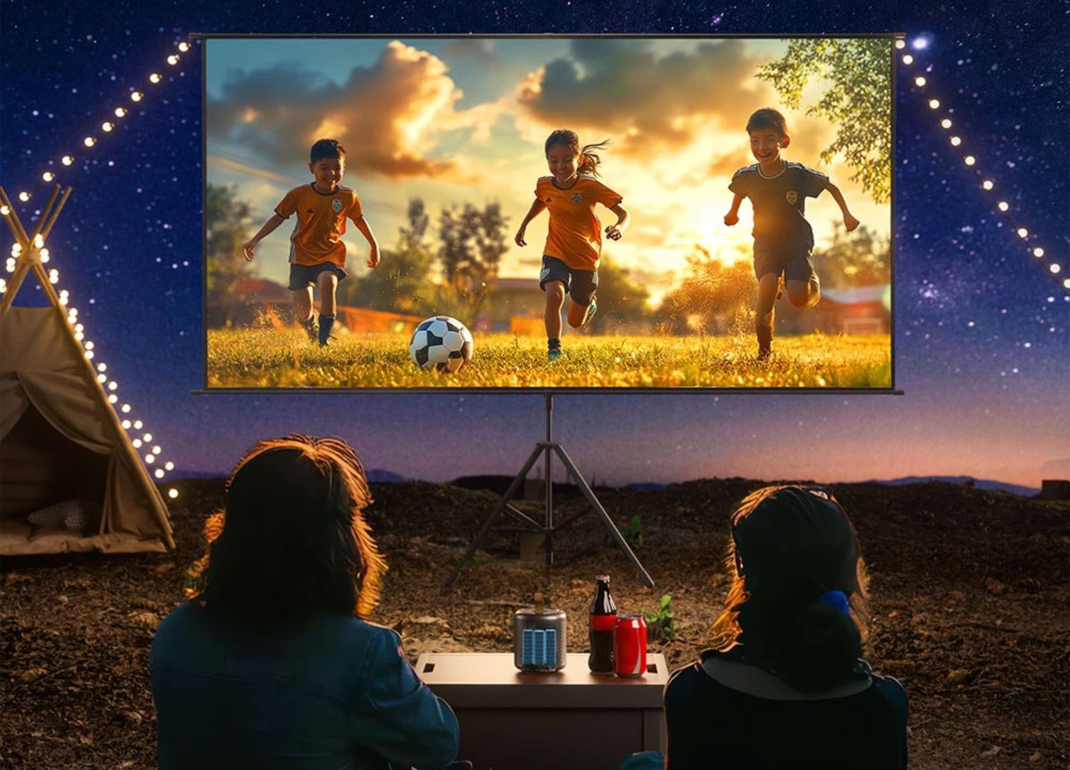 Der Dolphin von Etoe ist ein besonders handlicher Projektor und bietet ebenfalls eine 1080p-Auflösung samt 4K-Dekodierung und 500 ANSI-Lumen Helligkeit. Mit seinem integrierten Akku mit 10.000 mAh Kapazität ermöglicht er bis zu 2,5 Stunden Wiedergabezeit ganz ohne Steckdose, beispielsweise bei Kinoabenden im Freien.