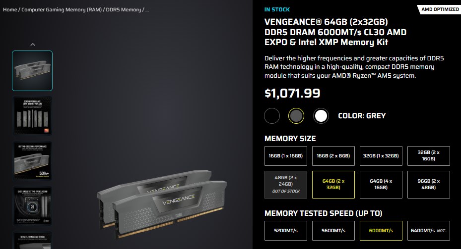 Doch nur zwei Tage nach der Verteilung dieser 40-%-Coupons hat Corsair die Preise für DDR5-Produkte im gesamten Shop stillschweigend erhöht. Dadurch wird der tatsächliche Wert der Rabatte erheblich gemindert. Ein deutliches Beispiel ist das Corsair Vengeance 64 GB DDR5-Kit. Laut einem Screenshot von web.archive.org lag der Preis bis vor zwei Tagen noch bei $841,99 (etwa 720 Euro). Dieser Preis war zwar bereits sehr hoch, spiegelte aber die aktuelle Marktlage wider, in der die Preise aufgrund des KI-Booms und der hohen DRAM-Nachfrage stark gestiegen sind. Kurz nach Ausgabe der 40-%-Codes sprang der Preis für dasselbe Kit jedoch auf $1.071 (etwa 916 Euro) – ein satter Aufschlag von rund $230 (etwa 197 Euro).