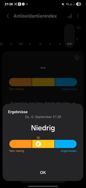 Neu ist der AGEs-Index. Das soll ein Indikator für Stoffwechselfitness sein. Der Wert wird auf einer Farbsscala angegeben, zusätzlich gibt es eine Wortnote und einen Punktwert. Die Galaxy Watch8 kann außerdem den Antioxidantienindex, die Gefäßbelastung und Körperzusammensetzung messen.
