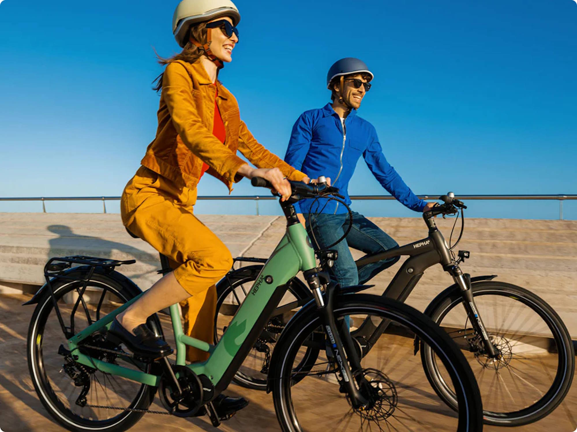 Erhältlich sein wird das Fahrrad in drei Größenversionen und auch als Tiefeinsteiger - und in zwei Farbvarianten. Wie für ein Trekking-E-Bike üblich kommt eine Federgabel zum Einsatz, welche von SR Suntour stammt und damit etwa auf Kopfsteinpflaster eine etwas angenehmere Fahrt erlauben dürfte. Hepha verbaut eine Shimano-Kettenschaltung mit zehn Gängen. Vorne und hinten kommen hydraulisch agierende Shimano BR-MT410-Scheibenbremsen zum Einsatz, diese bringen jeweils 180 Millimeter große Bremsscheiben mit.