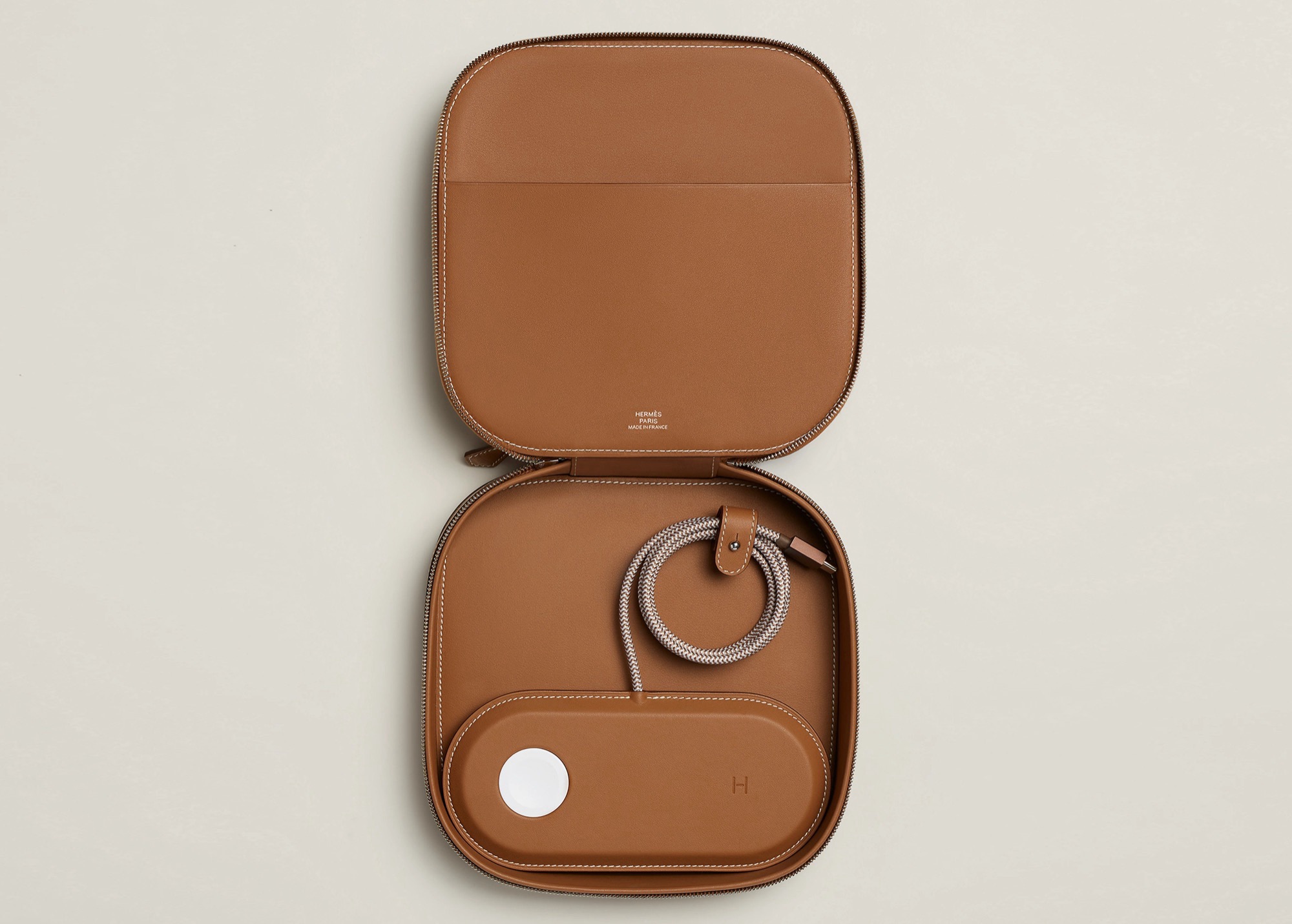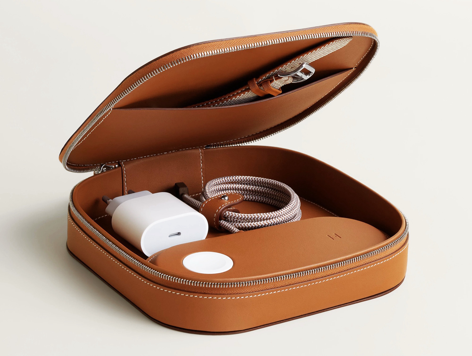 Das ist nicht zuletzt deshalb überraschend, weil das Set mit MagSafe-Ladegerät und Transporttasche 3.950 Euro kostet, mehr als drei Apple iPhone 17 Pro mit 256 GB Speicher. Das Leder-Etui bietet ausreichend Platz, um neben dem MagSafe-Ladegerät auch ein passendes USB-C-Ladegerät sowie kleineres Zubehör wie Armbänder für die Apple Watch oder weitere Ladekabel zu transportieren. Das Etui wird in Frankreich hergestellt, was wohl maßgeblich zum sehr hohen Preis beitragen dürfte.