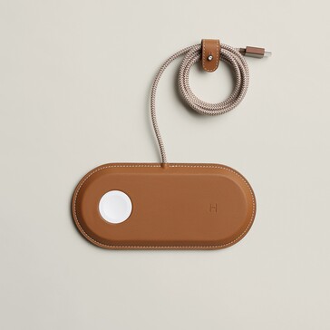 Das Highlight ist ein MagSafe-Ladegerät, dessen Gehäuse fast vollständig mit Leder bezogen wird. Das linke MagSafe-Ladepad kann auch eine Apple Watch laden, während das rechte Ladepad mehr Strom zur Verfügung stellt, um ein iPhone schneller aufzuladen. Das Kabel ist fest integriert, und kann daher im Falle eines Defekts nicht einfach ersetzt werden. Zur Nutzung wird ein USB-C-Ladegerät mit einer Leistung von mindestens 20 Watt benötigt, das sich nicht im Lieferumfang befindet.