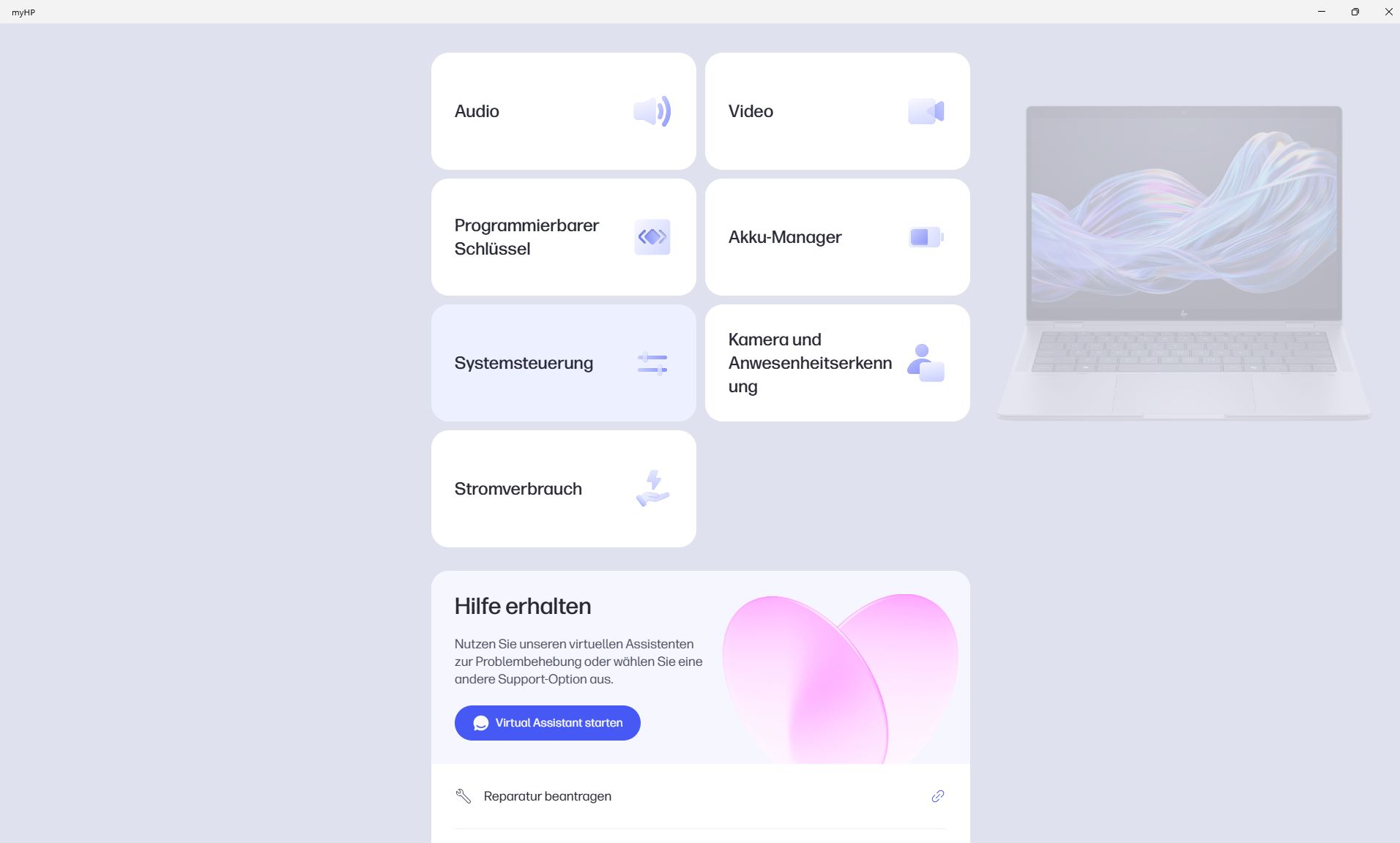 MyHP dient als Control Center, hier gibt es zwei Leistungsprofile und diverse andere Einstellungen, zudem hat HP ein eigenes Energieprofil unter Windows erstellt. Wir belassen es für unsere Benchmarks auf den Standardeinstellungen.