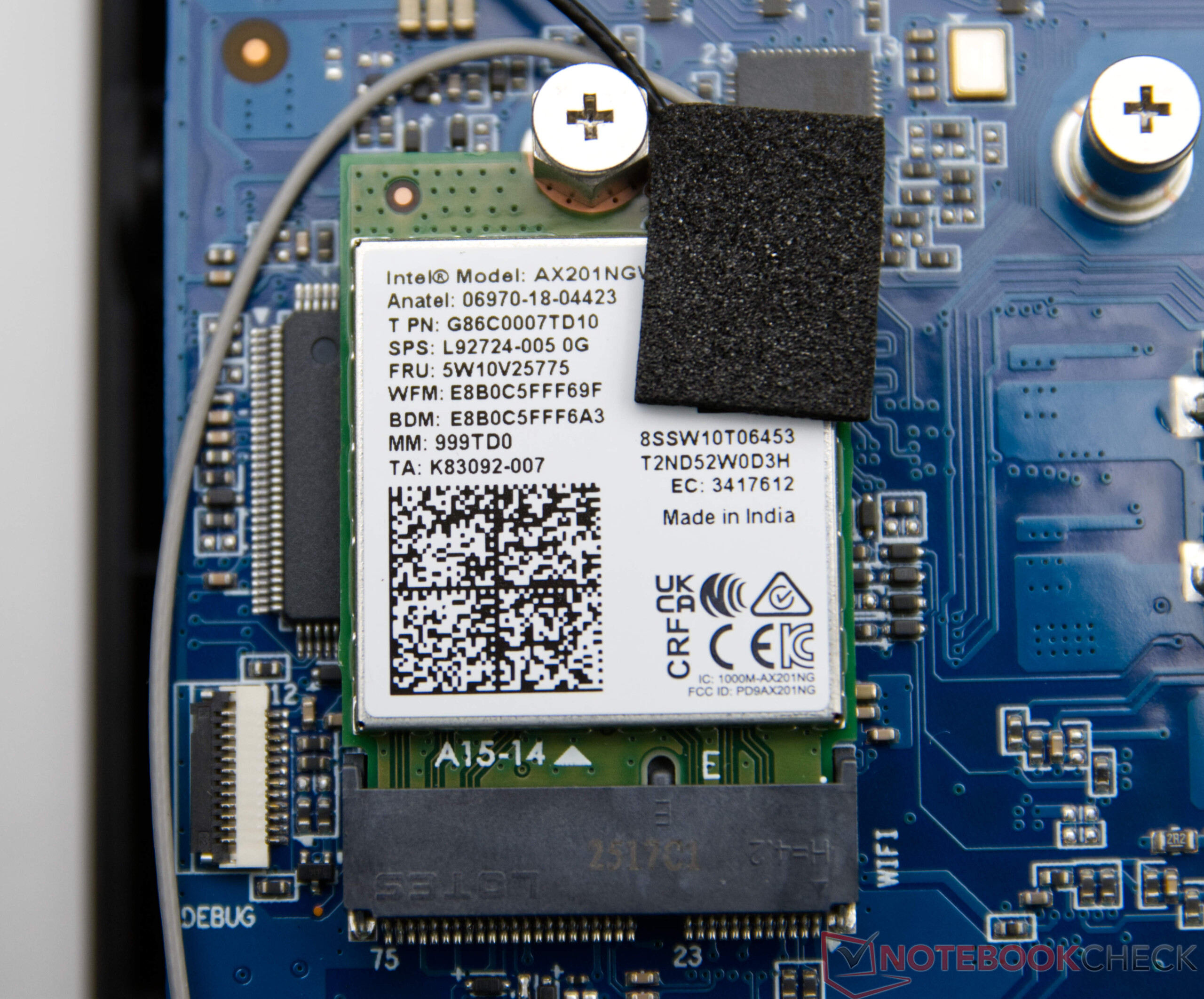 Der EVO-T1 bietet eine vielseitige Anschlussausstattung mit mehreren USB-Ports, zweimal 2,5-Gbit-Ethernet, USB4 und einem dedizierten OCuLink-Port, der keinen der drei M.2-Steckplätze belegt – in dieser Geräteklasse keine Selbstverständlichkeit. Ein aktuelleres WLAN-Modul wäre wünschenswert, denn das verbaute Intel Wi-Fi 6 AX201 unterstützt das 6-GHz-Band (Wi-Fi 6E) nicht.