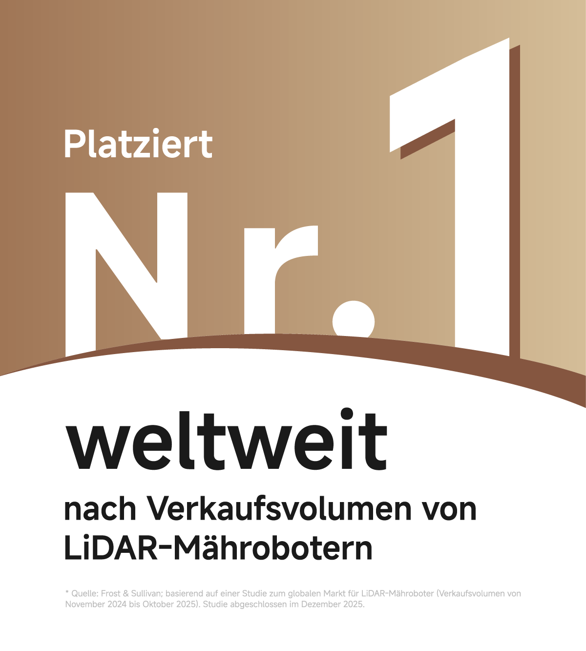 MOVA ist mit seinem 360° 3D LiDAR der führende Hersteller und Marktführer im Bereich der Mähroboter mit LiDAR-Sensor. Das Unternehmen ist laut einer aktuellen Studie von Frost & Sullivan aus dem Dezember 2025 im Zeitraum von November 2025 bis Oktober 2025 weltweit der führende Anbieter nach Absatzvolumen von LiDAR-Rasenmährobotern.