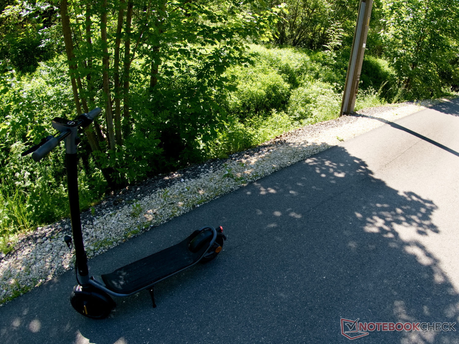 Im Tageslicht fällt auf, dass die Geschwindigkeitsanzeige des E-Scooters zwar hell ist, aber teils nicht gegen das Sonnenlicht ankommt. So ist es im strahlenden Sonnenschein mitunter schwierig, das LED-Display zu erkennen.