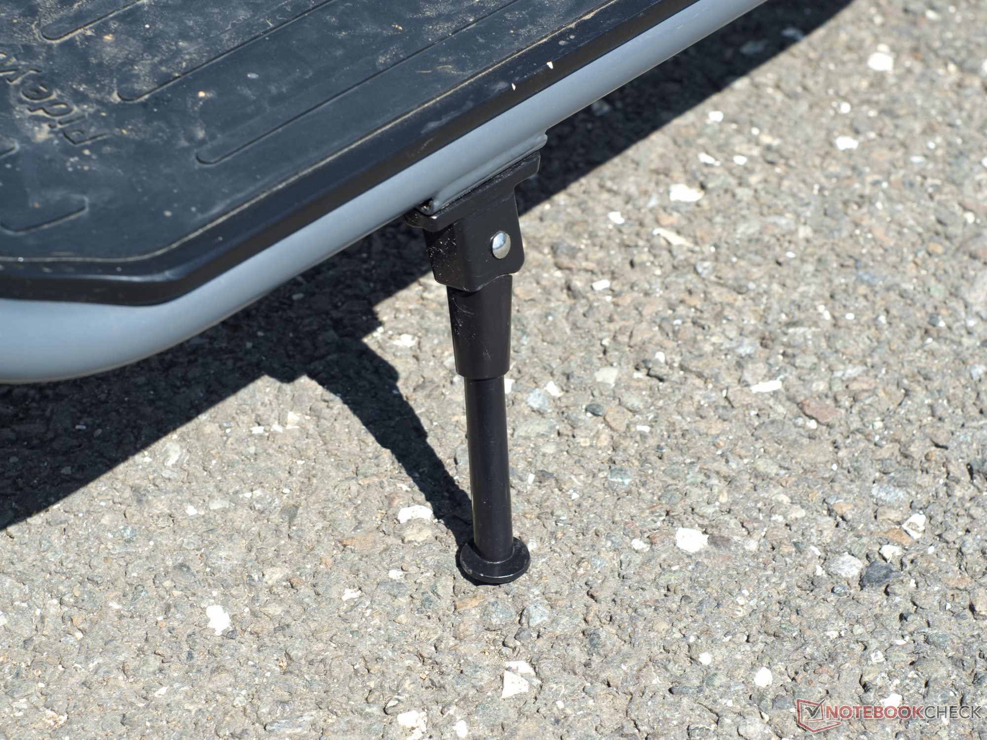 Der klappbare Ständer am Himo L2 Max kommt mit einer großen Auflagescheibe, womit der Elektroroller sicher steht. Leider kann man den Roller nur mittels Schloss sichern, da dem Elektroroller jegliche elektronische Wegfahrsperre fehlt. Die Bluetoothfunktionen welche das Lenzord X2-Y3-C5-V1 Board anscheinend bietet wurden hier wohl bewusst eingespart. Dabei ist es nicht unbedingt leicht, ein passendes Schloss abseits von Scheibenbremsschlössern zu finden. Da der Roller nur am Heck die Möglichkeit hat ein Schloss durch eine entsprechende Öse am Rahmen zu ziehen.