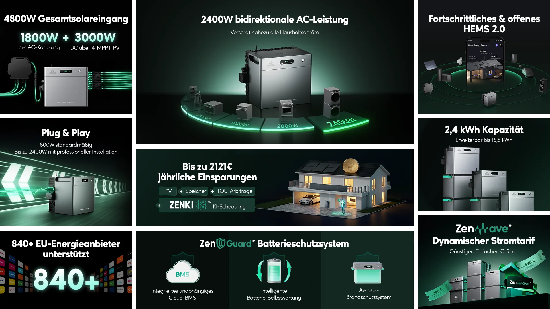Das System mit bis zu 2.400 W Leistung ist die ideale Lösung, die ein bestehendes Setup erweitern und den PV-Speicher nahtlos in ein vorhandenes Smart Home und Energiemanagement integrieren möchten. Alternativ bietet Zendure natürlich auch ein eigenes Energiemanagementsystem für die optimale Nutzung des selbsterzeugten Stroms sowie das Ausnutzen von dynamischen Stromtarifen für maximale Kostenersparnis.