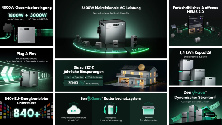 Kürzlich hat Zendure seine SolarFlow 2400 Serie auf den Markt gebracht. Das 2.400W bidirektionale AC KI-gestützte Balkonspeichersystem ist noch kurze Zeit mit sattem Rabatt direkt beim Hersteller erhältlich und kombiniert hohe Performance mit maximaler Kontrolle.