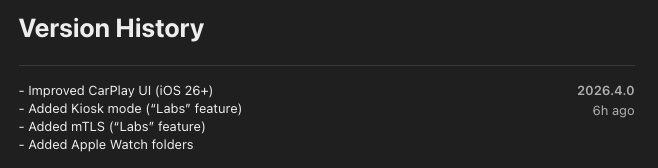 Erstens hat das Unternehmen die Benutzeroberfläche für CarPlay optimiert (für Geräte mit iOS 26 und höher). Leider wurden keine weiteren Details dazu genannt, was genau sich geändert hat. Zudem enthält die Version 2026.4.0 drei neue Funktionen. Eine davon ist der Kiosk-Modus, der offenbar mit der Integration des Fully Kiosk Browsers verknüpft ist.