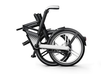 Der Hersteller wirbt nicht nur mit technischen Innovationen im E-Fahrrad-Segment, etwa auch mit dem zusätzlich verbauten Gyroskop, das neben Torque- und Speed-Sensor (Drehmoment und Geschwindigkeit) extra Tretunterstützung beim Bergauffahren liefern soll, sondern auch mit schickem und mehrfach prämiertem Design. Ungewöhnlich sind nicht nur die im geschwungenen Lenker integrierten Kontrollfunktionen mit Display und Kilometermesser sondern auch der breite Sitz, der laut diverser Youtube-Tests zwar gewöhnungsbedürftig aber offenbar recht komfortabel ist. Im gefalteten Zustand kann zusätzlich ein Ständer ausgeklappt werden.