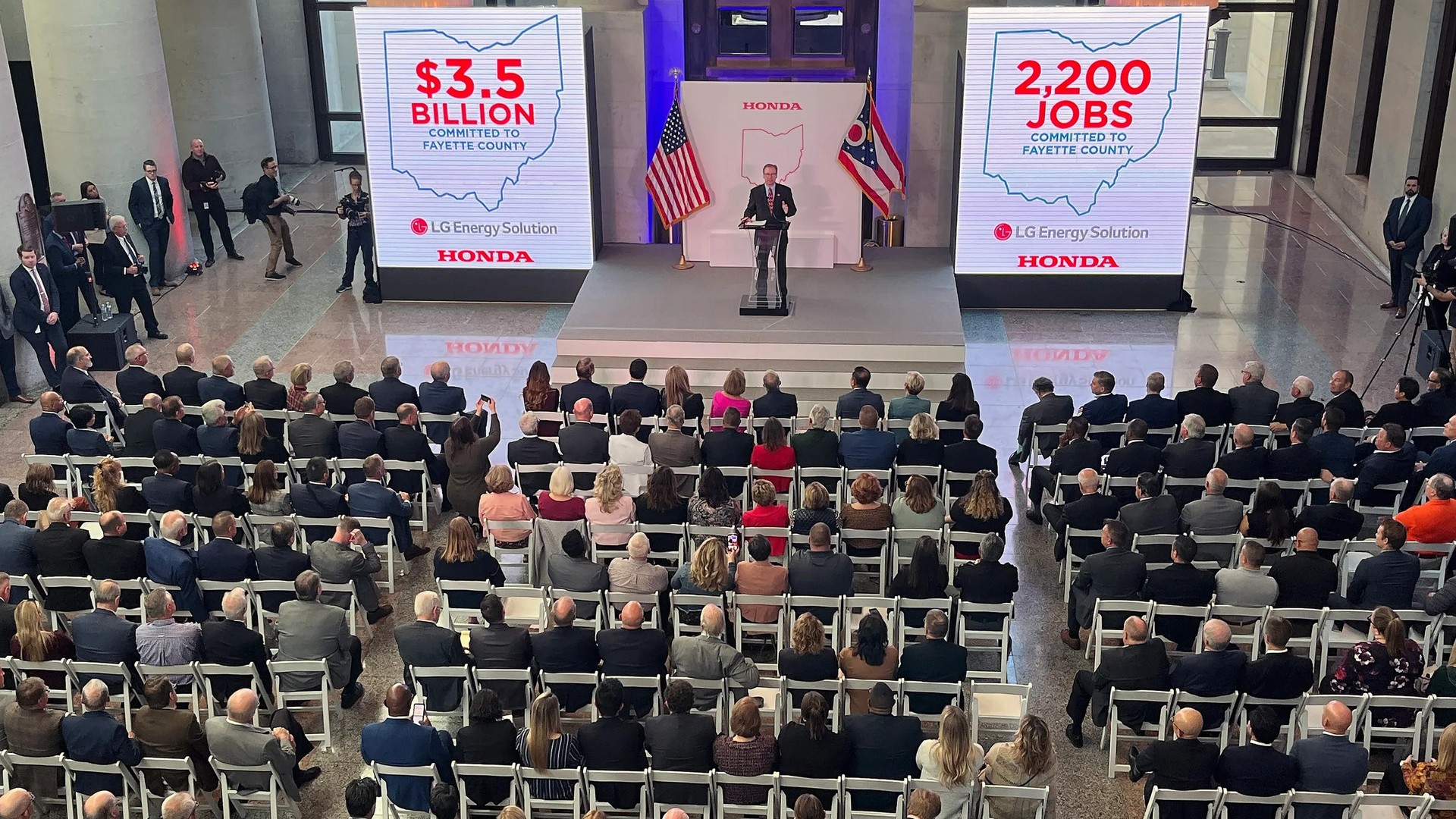 Der Autohersteller Honda und die LG Energy Solution (LGES) errichten ein Batteriewerk in Fayette County, etwa 40 Meilen südwestlich von Columbus. Die beiden Unternehmen haben angekündigt, rund 3,5 Milliarden US-Dollar in das Werk für Antriebsbatterien von E-Autos zu investieren und 2.200 Arbeitsplätze zu schaffen. Die Gesamtinvestitionen von Honda und LG im Rahmen des Joint Ventures werden sich voraussichtlich auf 4,4 Mrd. US-Dollar belaufen.