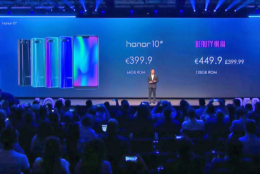 Huawei hat heute in London die internationale Vermarktung des Honor 10 gestartet. Die Produktvorstellung in China war bereits vor einem Monat, jetzt ist es bei uns erhältlich und zwar zum Preis von 399 Euro. Dafür gibt es die Basisversion mit 64-GB-Speicher, die bereits über eine Reihe von Oberklassen-Features verfügt. Zu den Top-Features des Honor 10 gehört seine Kamera-Ausstattung. Auf der Frontseite ist eine detailscharfe 24-Megapixel-Selfiekam mit f/2,0 Objektiv installiert. Sie verfügt über eine integrierte Gesichtserkennungsfunktion, die nicht nur zum Entsperren der Smartphones einsetzbar ist, sondern helfen soll, möglichst perfekte Porträts zu knipsen. Auf der Rückseite ist eine Dual-Kamera mit Blitz eingebaut, die über einen 16-Megapixel-Farbsensor und einem 24-Megapixel-Schwarzweiß-Sensor verfügt und lichtstarke Objektive mit Blende f/1,8 nutzt. Auch diese Doppelkamera setzt auf künstliche Intelligenz, um Fotomotive schnell und präzise zu erkennen und die Fotos optimal zu bearbeiten.