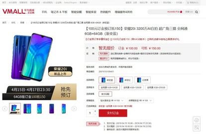 Huawei-Tochter stellt diesen Mittwoch am 17. April das neue Mittelklasse-Handy Honor 20i als Variante von Honor 10i und Honor 20 Lite vor. Für Vorbesteller hat Honor auf Vmall.com das Modell Honor 20i mit 6/64 GB bereits online gestellt. Wer möchte, der kann sich gegen eine Anzahlung von 100 bis 150 Yuan (13 bis 20 Euro) das Honor 20i reservieren.