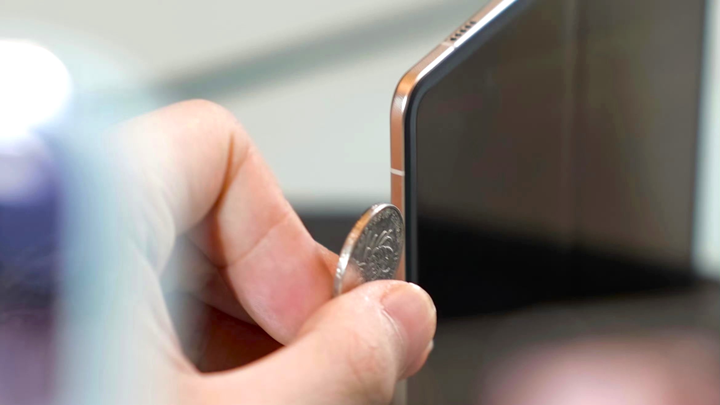 Wie dünn das weltweit dünnste Foldable in 2025 letztlich sein wird, sollen uns die Bilder oben und unten zeigen, die im Rahmen eines kleinen Showevents rund um die Pressekonferenz des Honor-CEOs entstanden sind. Da wurde das neue Foldable mit Kamera-Sichtschutz auf einem kleinen Schiffchen übers Wasser geschickt, umringt von neugierigen Journalisten mit ihren Kameras. Einige haben zum Vergleich auch Gegenstände des Alltags wie Münzen oder einen Stift ans Foldable-Gehäuse gehalten, um den Fortschritt in Sachen Abspeckdiät zu demonstrieren.