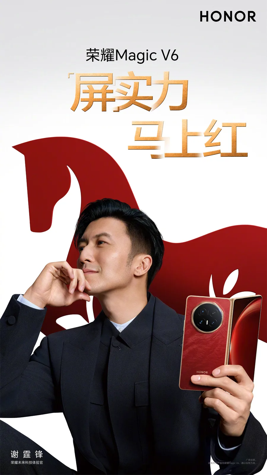 Besonders ergiebig ist der erste "Aufwärmtag" für das am kommenden Sonntag global am Mobile World Congress startende Magic V6, das bereits bei Olympia auf der Piste und in einem Fotostudio zu sehen ist. Honor zeigt nicht nur offizielle Renderbilder der "Red Rabbit" benannten Farboption mit einigen Design-Highlights sondern auch gleich ein Teaservideo: