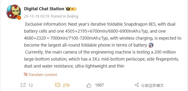 Laut Kommentar von Digital Chat Station wird es sich jedenfalls um die größten Akkus in allen 2026 erwarteten Foldables handeln, zudem setzt Honor auf den Snapdragon 8 Elite Gen 5 für beste Performance im Hosentaschentablet. Aktuelle Testgeräte sind auch mit einem 200 Megapixel Sensor sowie 3x Periskop-Telefoto bestückt und sollen nicht nur wasser- sondern auch staubresistent und natürlich wieder ultradünn mit seitlich integriertem Fingerabdrucksensor sein. Wenn sich der Hinweis auf den 200 Megapixel Sensor bewahrheitet, tritt Honor damit in direkte Konkurrenz zur 200 Megapixel Kamera des Samsung Galaxy Z Fold 8, das im nächsten Jahr auch einige Kamera-Upgrades bekommen soll.