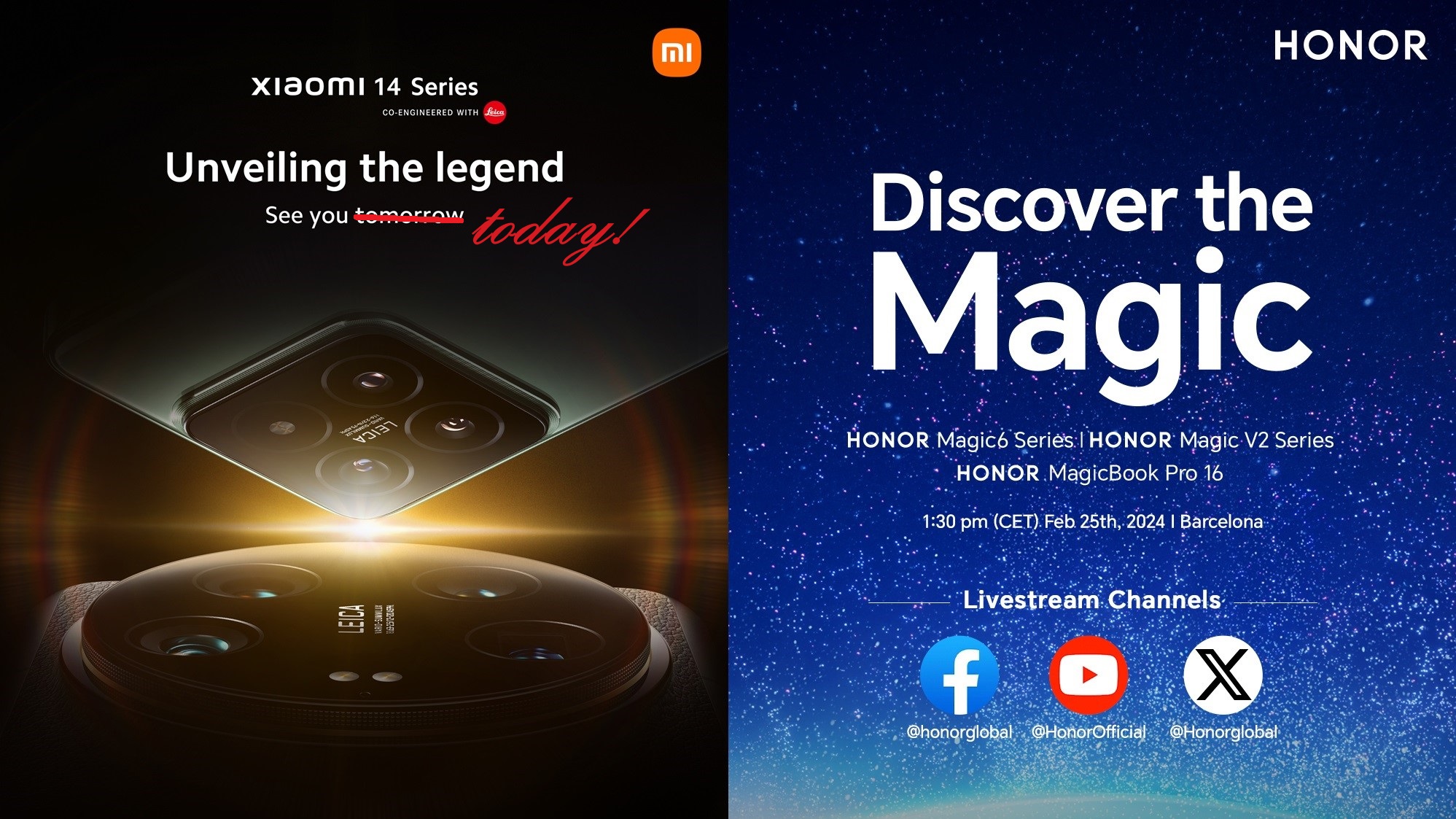 Zwei Schwergewichte in der Smartphone-Branche proben heute Staffelübergabe. Livestream-ZuseherInnen aus Deutschland, Österreich und der Schweiz haben es hier deutlich bequemer als die Besucher vorort. Beide Events finden in maximaler Entfernung voneinander in der katalonischen Hauptstadt statt, von daheim aus reicht dagegen ein Wechsel des Youtube-Channels. Los geht's um 13.30 mitteleuropäischer Zeit mit dem Honor Magic Launch der unter dem Motto "Entdecke die Magie" steht. Bereits um 15.00 ist dann Xiaomi mit seinem "Enthülle die Legende" Event dran, bei dem natürlich vor allem das Xiaomi 14 Ultra im Mittelpunkt stehen wird.