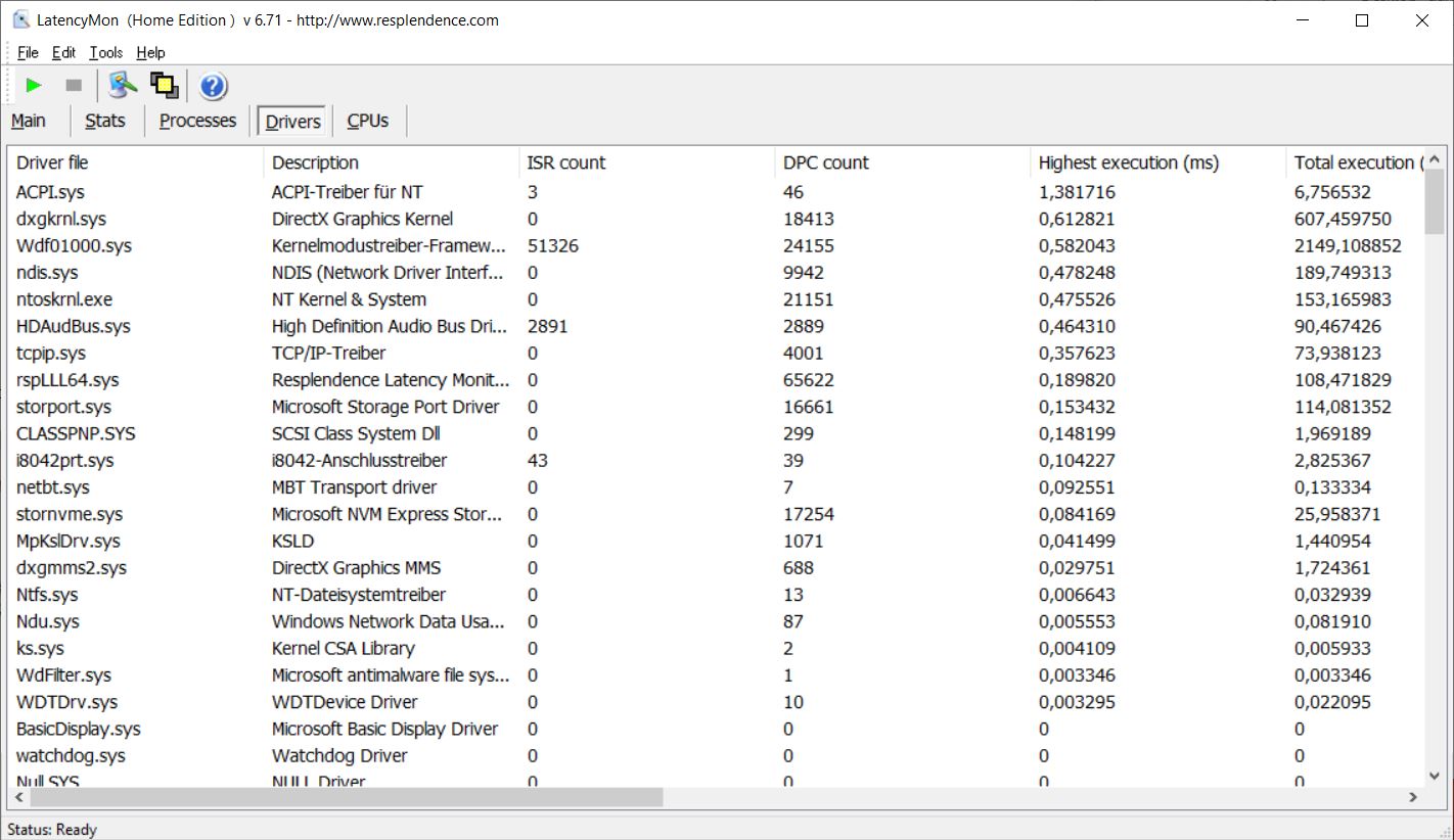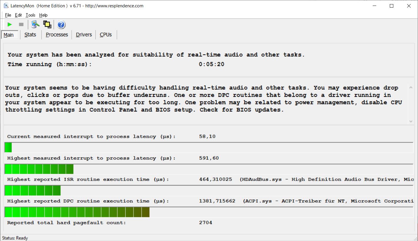 | DPC Latencies / LatencyMon - interrupt to process latency (max), Web, Youtube, Prime95 | |