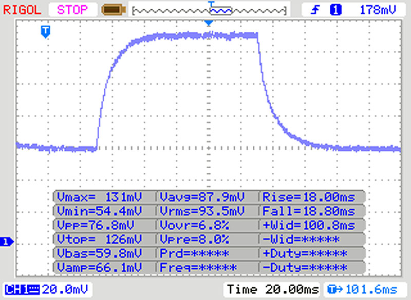 | 36 ms ... steigend ↗ und fallend ↘ kombiniert | ↗ 18 ms steigend | |