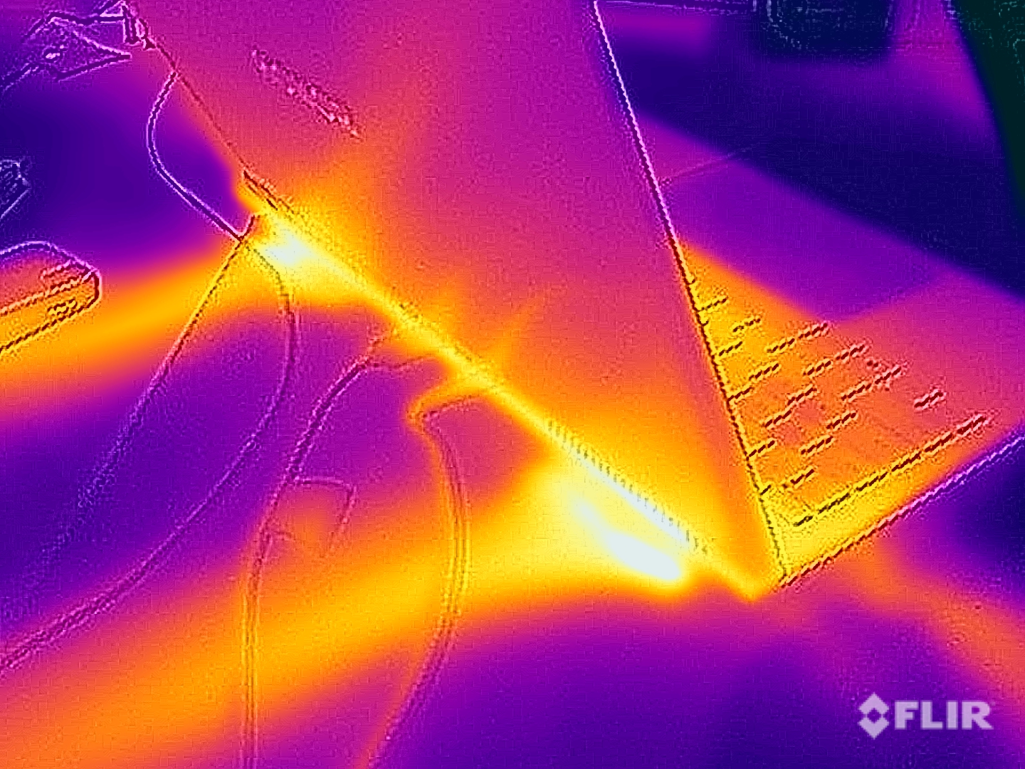 (-) Auf der Unterseite messen wir eine maximalen Wert von 45.3 °C (im Vergleich zum Durchschnitt von 39.2 °C).