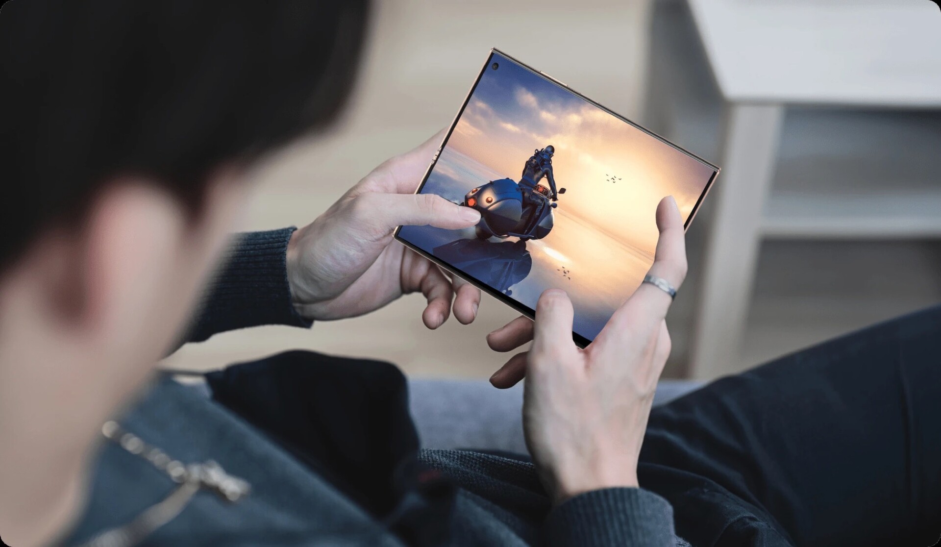 Das nach außen gefaltete Panel kann in diesem Fall ein Handtaschen-Design nach Wahl auf dem Always-on-Display darstellen, wodurch das V Purse zu jedem Outfit passen soll. Doch auch, wer das Gerät schlicht als Smartphone verwenden möchte, kommt auf seine Kosten, denn Honor verbaut ein 7,71 Zoll großes OLED-Display mit einer Auflösung von 2.348 x 2.016 Pixel und einer Spitzenhelligkeit von 1.600 Nits. Mit einem Qualcomm Snapdragon 778G bietet das Gerät nur Mittelklasse-Performance.