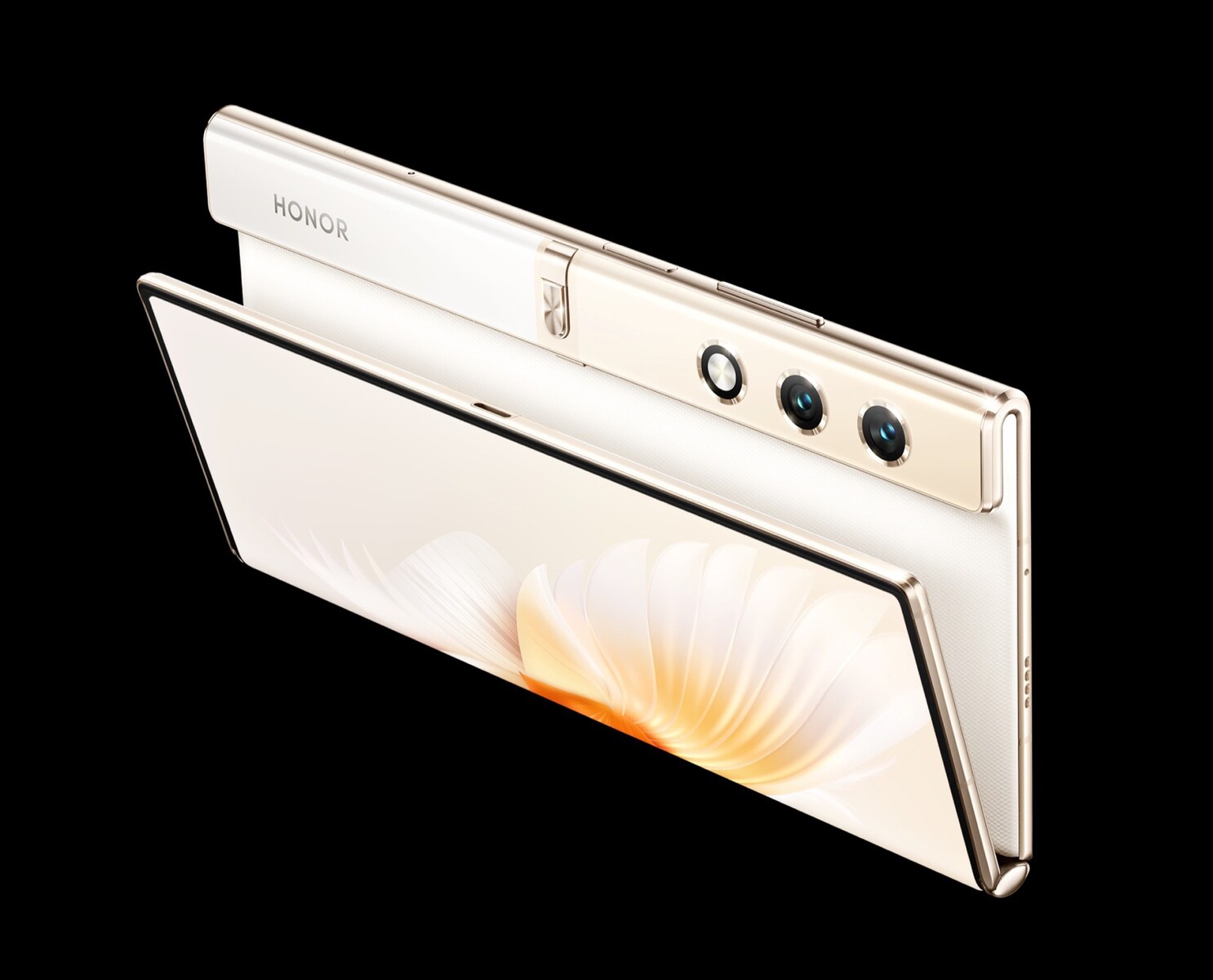 Das Smartphone besitzt eine 50 MP f/1.9 Hauptkamera und eine 12 MP Ultraweitwinkel-Kamera, für die Nutzung im aufgeklappten Zustand verbaut Honor zusätzlich eine 8 MP Selfie-Kamera. Der Akku fasst 4.500 mAh, geladen wird über USB-C mit bis zu 35 Watt. Eine Besonderheit des Honor V Purse ist das ultradünne Gehäuse – aufgeklappt misst das Gerät gerade einmal 4,3 Millimeter, zugeklappt wächst die Bauhöhe auf exakt das Doppelte, also 8,6 Millimeter – einen Spalt sucht man vergeblich. Mit einem Gewicht von 214 Gramm ist das Foldable trotz größerem Display und Akku sogar minimal leichter als ein Apple iPhone 15 Pro Max.