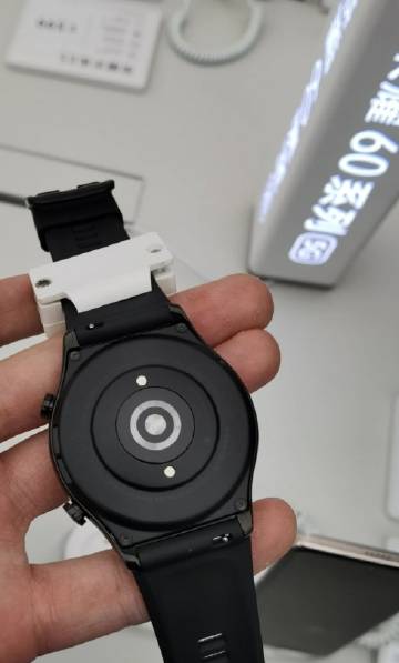 Nun gibt es endlich mal wieder neue Informationen. Diese stammen zwar wieder nicht von offizieller Seite. Aber sie liefern zumindest ein Lebenszeichen und geben der Hoffnung Nahrung, dass das Wearable tatsächlich zeitnah in den Handel kommen wird. Bei Weibo wurden zwei Bilder veröffentlicht, die die Smartwatch auf realen Aufnahmen zeigen und wohl in einem Shop aufgenommen wurden. Zu sehen ist die Ausführung mit schwarzem Gehäuse und gleichfarbigem Silikon-Armband.
