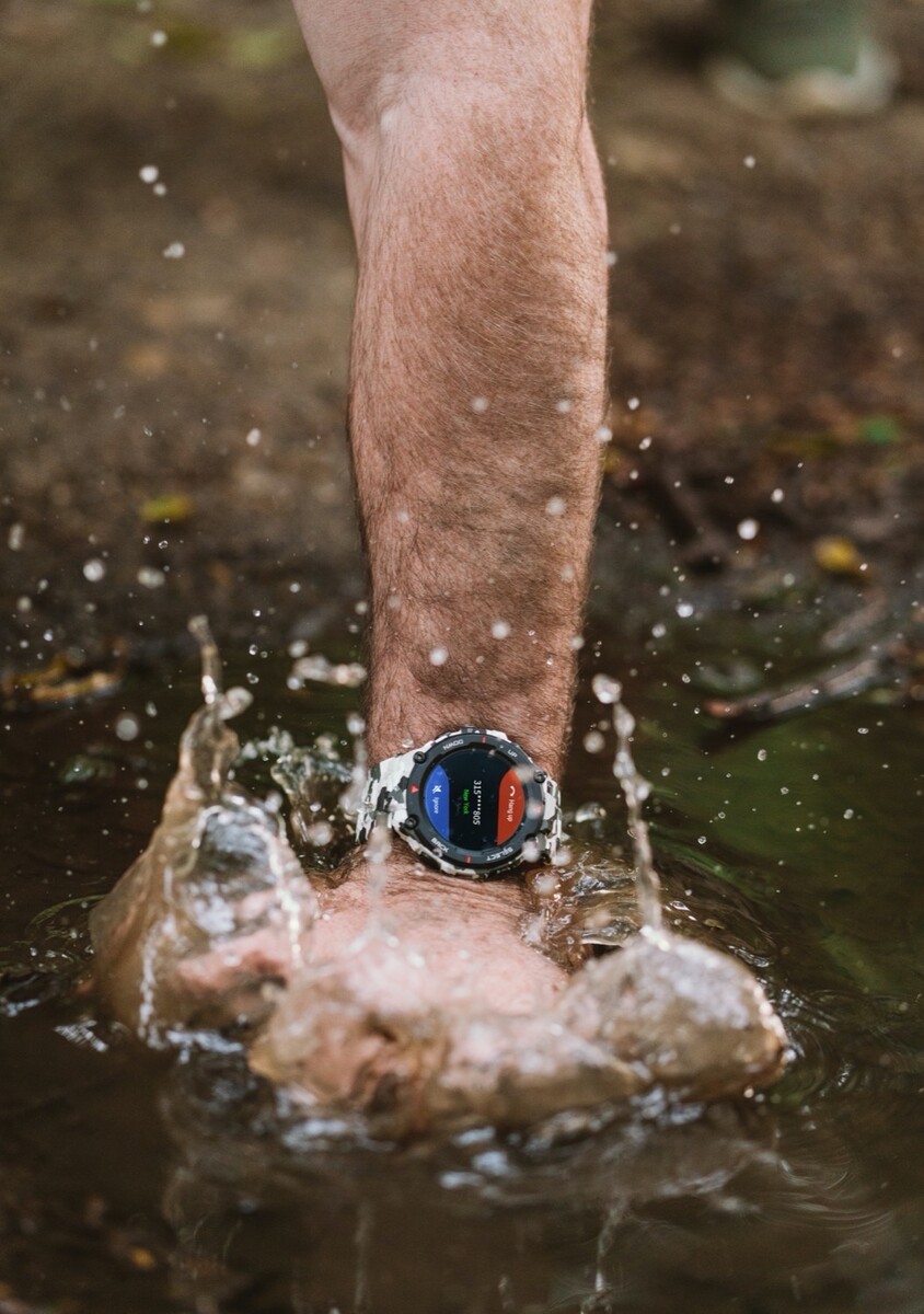 In Sachen Outdoor-Tauglichkeit bietet die Uhr einiges: Sie ist bis zu 50 Meter Tiefe wasserdicht, gegen das Eindringen von Sand und Staub und gegen Stöße geschützt, wobei auch die Verwendung in sehr hohen oder besonders niedrigen Temperaturen kein Problem sein soll. Natürlich bietet die Uhr auch entsprechende Sensoren, um die Herzfrequenz und den Schlaf im Blick zu behalten. Die Software kann 14 verschiedene Sportarten auswerten, vom Laufen über Schwimmen bis hin zum Triathlon.