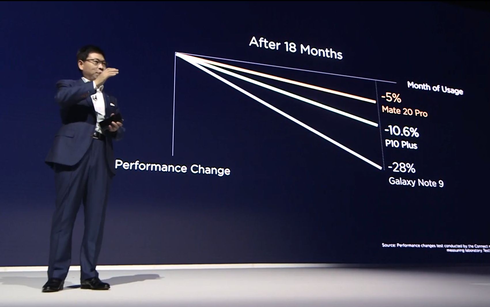 Der Triple-Cluster-Zugang mit zwei High-Performance Cortex A-76-Kernen bis zu 2,6 Ghz, zwei Mainstream-Cortex-A76-Cores mit 1,92 Ghz und vier Energiespar-Chips des Typs Cortex-A55 mit 1,8 Ghz Taktrate sorgen für deutlich verringerten Energieverbrauch und stark gestiegende Performance, von der man sich in Vorab-Benchmarks bereits ein Bild machen konnte. Dazu trägt auch die doppelt vorhandene NPU für beschleunigte KI-Algorithmen sowie die Mali G76 MP10-GPU bei. An Bord befindet sich nun auch eine Bluetooth 5.0-kompatible Funkeinheit und ein Cat.21-LTE-Modem mit bis zu 1,4 Gbps Downloadgeschwindigkeit sowie Dual-SIM-Dual-Standby-Funktion. Einziger Nachteil des Kirin 980 gegenüber Apples und Qualcomms aktuellen Chips: Er unterstützt weiterhin kein 4K-Recording bei 60 fps, bei 30 fps ist Schluss.