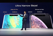 Erstmal ein paar Worte zu den Unterschieden zwischen Mate 20 und Mate 20 Pro: Das reguläre Mate 20 basiert auf einem sehr hellen 820 nits 6,53 Zoll großen LCD-Display mit 2.244 x 1.080 Pixeln Auflösung und 18,7:9-Format, das Mate 20 Pro setzt dagegen auf ein seitlich abgerundetes OLED-Panel mit deutlich höherer 3.120 x 1.440 Pixel Auflösung und HDR-Unterstützung sowie 19:9-Format. Im Vergleich zum Vorgänger Mate 10 Pro (oben) sieht man deutlich, wie stark Huawei das Kinn an der Unterseite reduziert hat, aufgrund der breiteren Notch des Pro-Modells, sieht das reguläre Mate 10 wohl für viele Notch-Hasser deutlich attraktiver aus, man verzichtet mit der kleinen "Waterdrop-Notch" des Mate 20 aber auf eine echte Face ID-Alternative zu Apples iPhone Xs und iPhone Xs Max für sicherere Gesichtserkennung mit 3D-Sensoren.