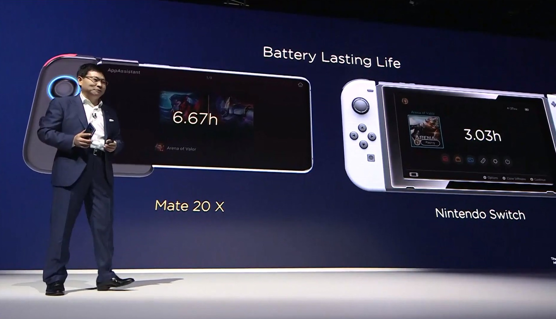 Was wir bislang noch außer Acht gelassen haben ist die verbesserte Kühlung des Mate 20 X mit einer Vapor Chamber und Graphene statt Kupfer, was deutlich mehr Leistungsfähigkeit beim Zocken und ein längerfristig kühleres Smartphone bedeutet und Huawei im Rahmen der Präsentation mehrmals betont hat (siehe auch Bilderstrecke unten). Demnach sieht Huawei das Mate 20 X auch als dediziertes Gamer-Handy und wird optional ein Gamepad dazu anbieten - Razer Phone und Co. müssen sich vielleicht bald warm anziehen beziehungsweise ihren Turbomodus einlegen. Übrigens auch die Nintendo Switch mit der das Mate 20 X heute in London ebenfalls mehrfach verglichen wurde.