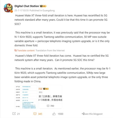 Laut Digital Chat Station ist von einem neueren Kirin-SoC auszugehen, nach dem Kirin 9010 im ersten Mate XT wird wohl stattdessen der Kirin 9020 zum Einsatz kommen. Auch ein Kamera-Upgrade dürfte drin sein, neben einer neuen 50 Megapixel Hauptkamera mit variabler Blende gäbe es potentiell auch ein Periskop-Telefoto-Update, so der Leaker auf der chinesischen Plattform Weibo. Ansonsten dürfte es sich aber eher um ein kleineres Generationen-Update handeln, womit unklar ist ob die früher mal erwähnten Hinweise auf ein robusteres Tri-Foldable-Gehäuse tatsächlich kommen werden oder nicht.